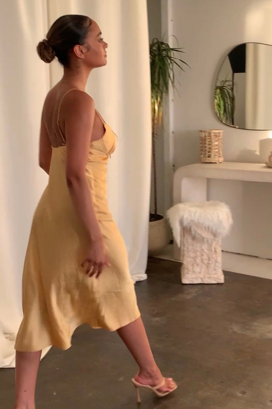 Stella Satin Midi Dress- Yellow Slip Dress (Adjustable Straps)